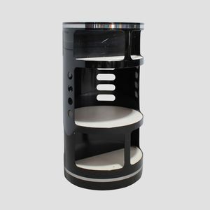 140x70 cm. Italia, anni 70 libreria circolare in ABS, acciaio cromato e legno laccato, lievi usure