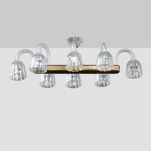 85x45 cm. Murano, anni 50-60 lampada a sospensione in vetro trasparente e ottone lucido e verniciato