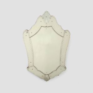 106x72 cm. anni 40-50 specchio da parete in vetro specchiato e legno