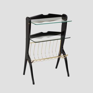 72x48x28 cm. anni 50 portariviste in legno laccato, ottone e vetro trasparente