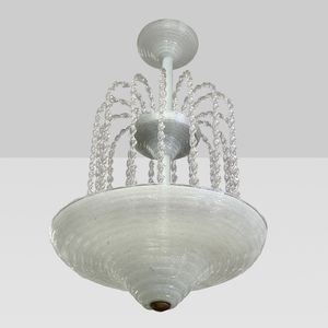 90x50 cm. Murano, anni 60-70 lampada a sospensione in vetro rugiada e vetro trasparente