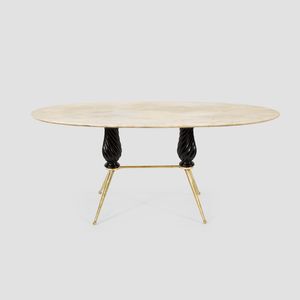 48,5x115x44 cm. anni 50 tavolino basso in legno, ottone e marmo
