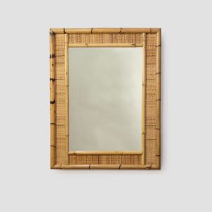 92x72 cm. anni 70 specchio da parete in rattan, midollino e bambù
