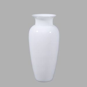 h. 40 cm. Murano, anni 70 vaso in vetro soffiato opalino bianco, firma a punta