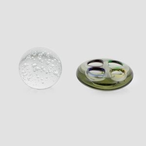 8,5x8,5x9 cm. - 8,5x7x7,5 Murano, anni 70 portasigarette e portafiammiferi in vetro colorato a bollicine