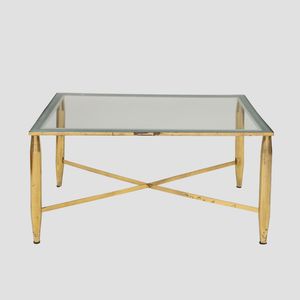 46,5x87x64 cm. anni 50 tavolino basso in ottone, vetro trasparente e vetro sabbiato, lievi difetti