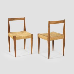 76x42x42 cm. anni 50 coppia di sedie in legno e paglia, lievi difetti