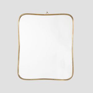 37x31 cm. anni 50 piccolo specchio da parete in vetro specchiato ed ottone