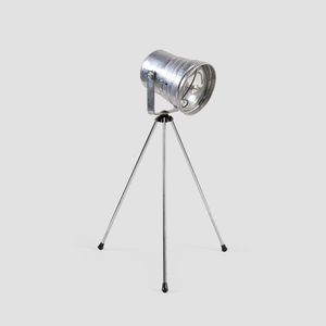 h. 50 cm. Italia, anni 90 lampada da tavolo a faro proiettore in alluminio, etichetta della produzione