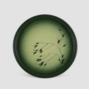 d. 30 cm. Italia, anni 60 piatto decorato in metallo verniciato, marchio della produzione, lievi usure