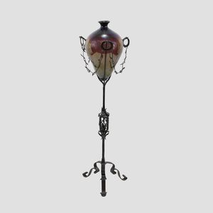 125x35 cm. Murano, anni 20 alzata in ferro battuto con vaso in vetro iridescente prod. MVM Cappellin