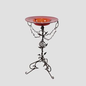 90x56 cm. Murano, anni 20 alzata in ferro battuto con piatto in vetro soffiato prod. MVM Cappellin