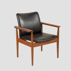 83x69x65 cm. Danimarca, anni 60 poltrona mod. 209 in legno e pelle imbottita, etichetta della produzione, lievi [..]