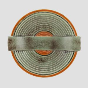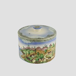 7x26 cm. Italia, anni 60 svuotatasche in legno dipinto, pergamena conciata e metallo cromato, etichetta della [..]