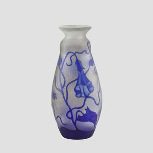 h. 44,5 cm. Murano, 1993 vaso serie Acco in vetro incamiciato con cordoli applicati, firma e data a punta, etichetta [..]