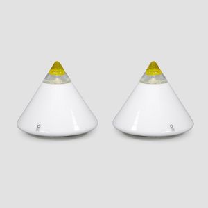 33x35 cm. Italia, anni 70 coppia di lampade da tavolo mod. Rio in vetro bianco, colorato, trasparente e metallo, [..]