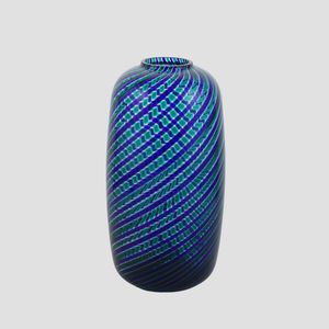 h. 44,5 cm. Murano, 1993 vaso serie Acco in vetro incamiciato con cordoli applicati, firma e data a punta, etichetta [..]