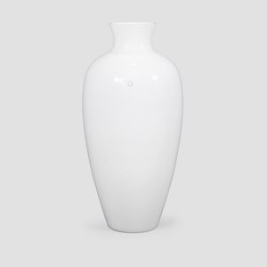 h. 62 cm. Murano, 1994 vaso serie Labuan in vetro soffiato opalino bianco, firma a punta