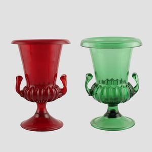h. 28,5- 26 cm. Murano, anni 60 coppia di vasi in vetro colorato