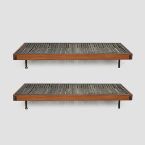 29x196x85 cm. Italia, 1959 due letti singoli serie Positano in legno e metallo verniciato, etichetta della produzione. [..]