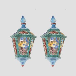 35x18x11 cm. Vietri, XX Sec. coppia di lampade da parete in ceramica policroma