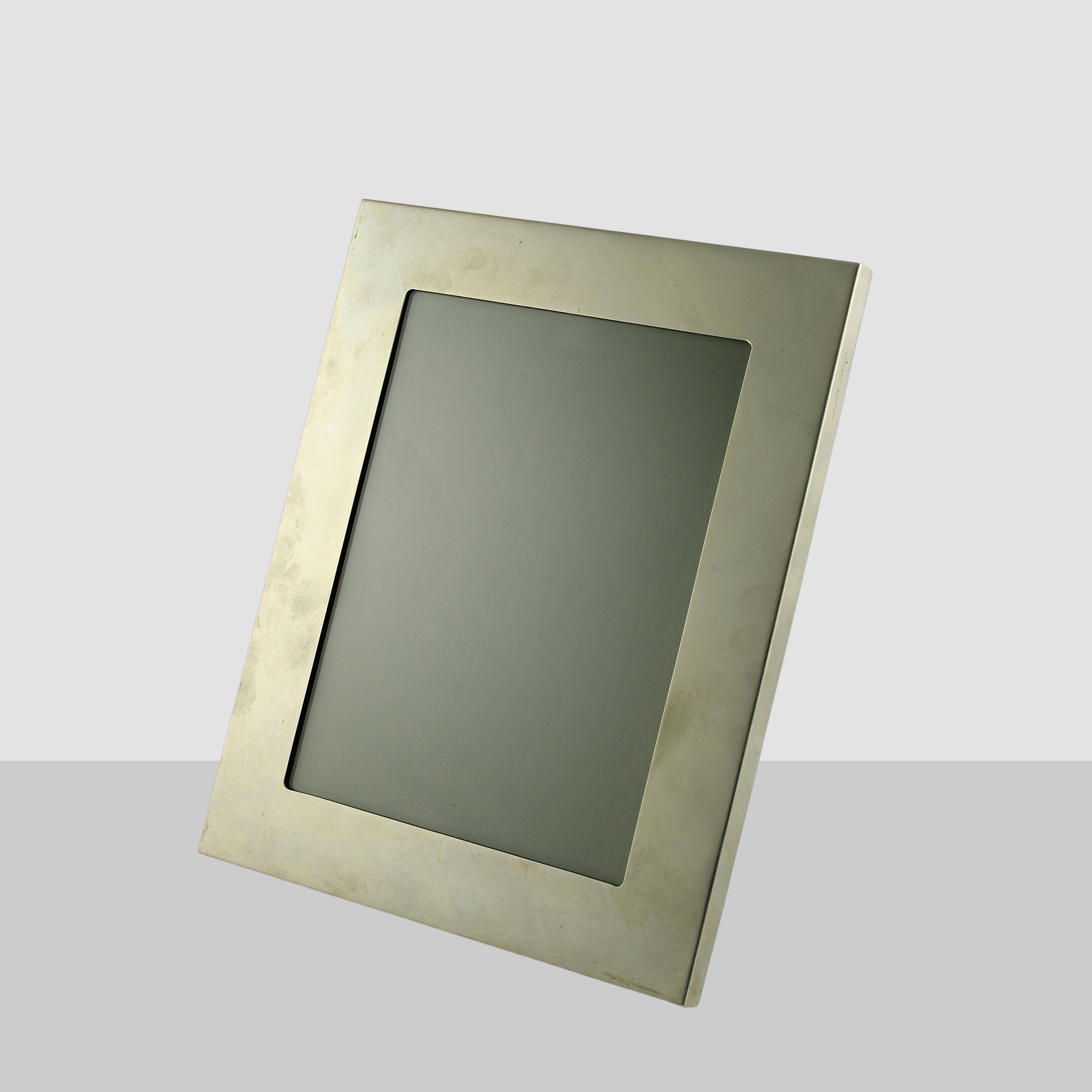 Italia, anni 70 cornice in metallo, tessuto e vetro, firmata