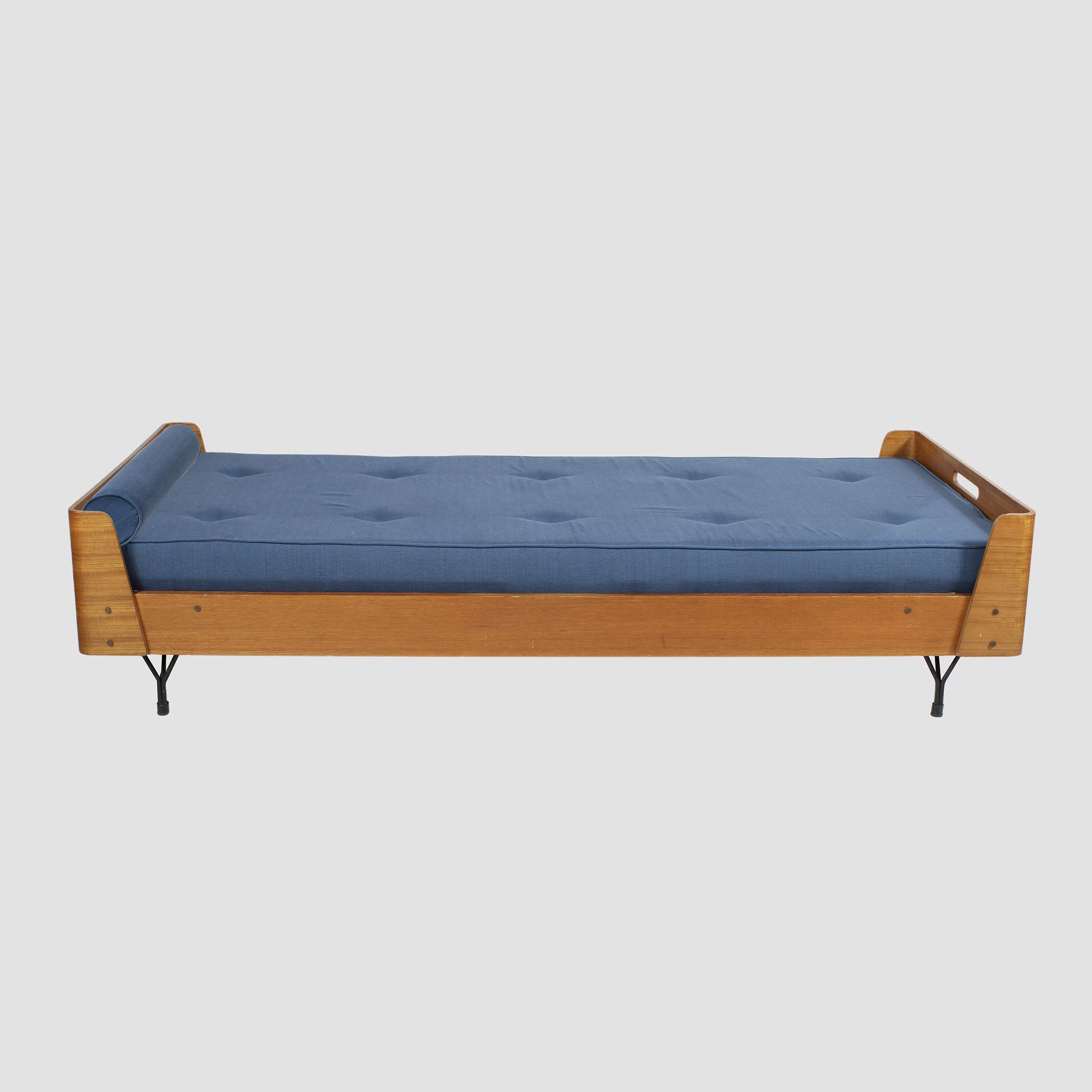 Italia, anni 60 daybed in legno, metallo e tessuto imbottito