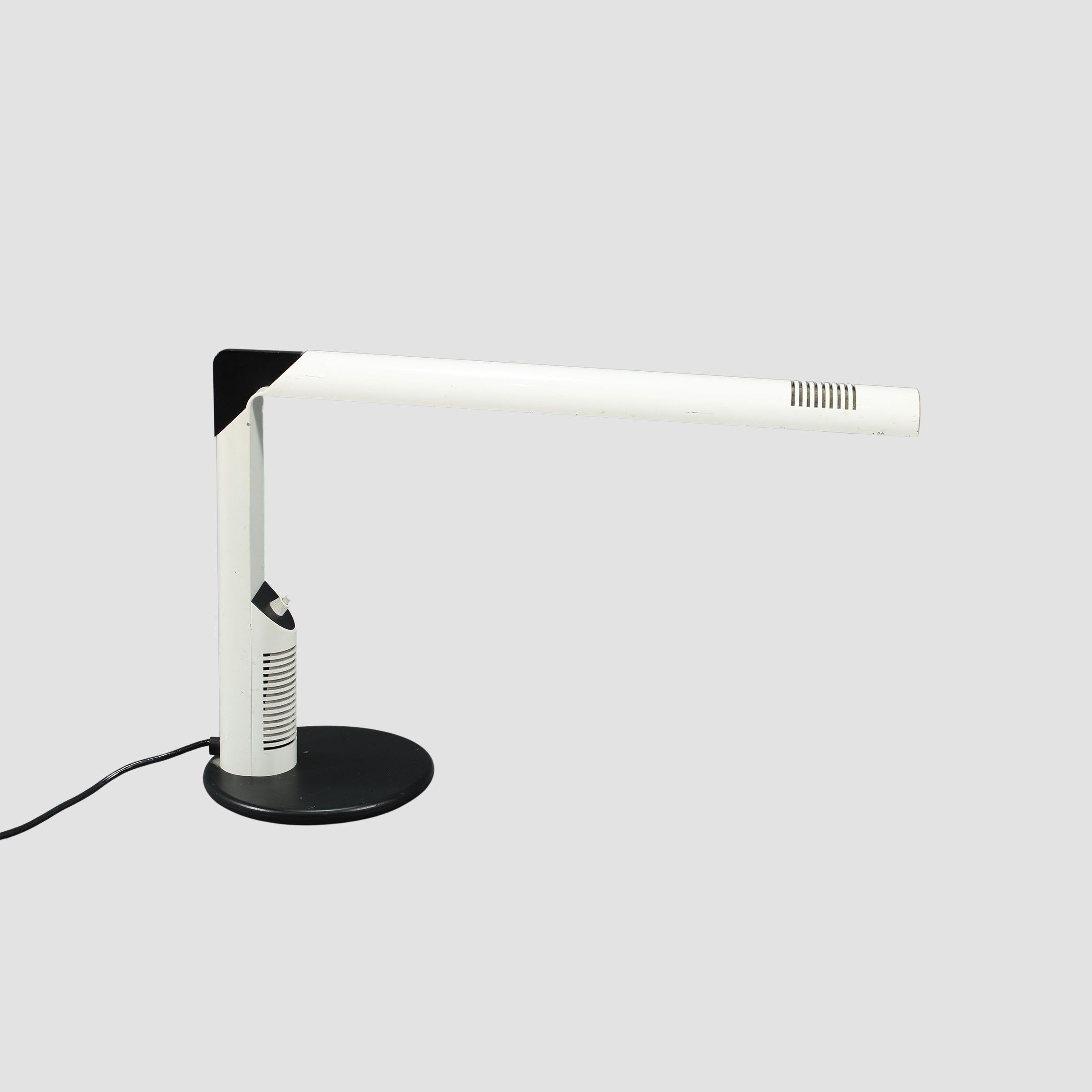 Italia, 1979 lampada da tavolo mod. Abele in alluminio e gomma, marchio della produzione, usure