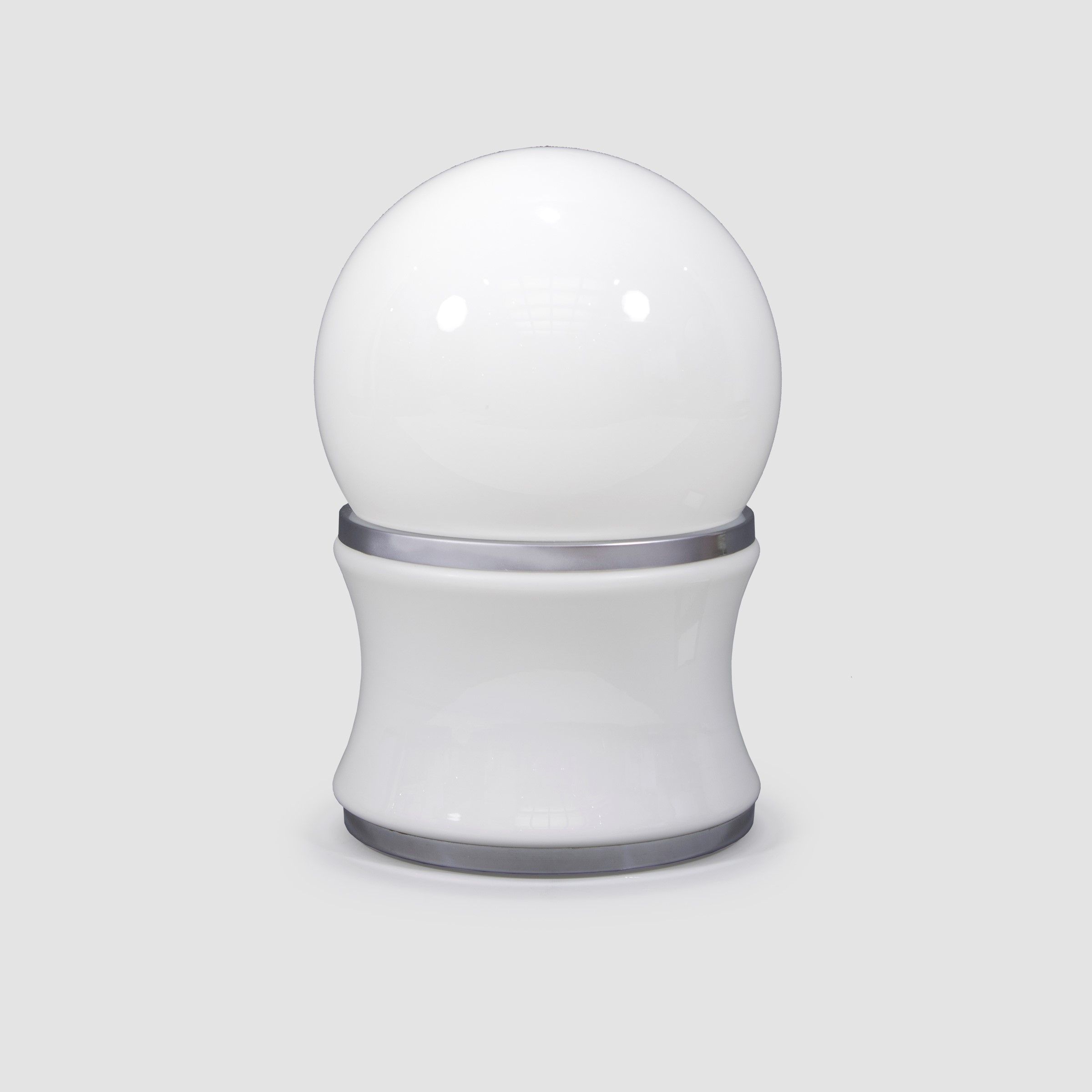 Italia, anni 70 lampada da tavolo in acciaio e vetro lattimo