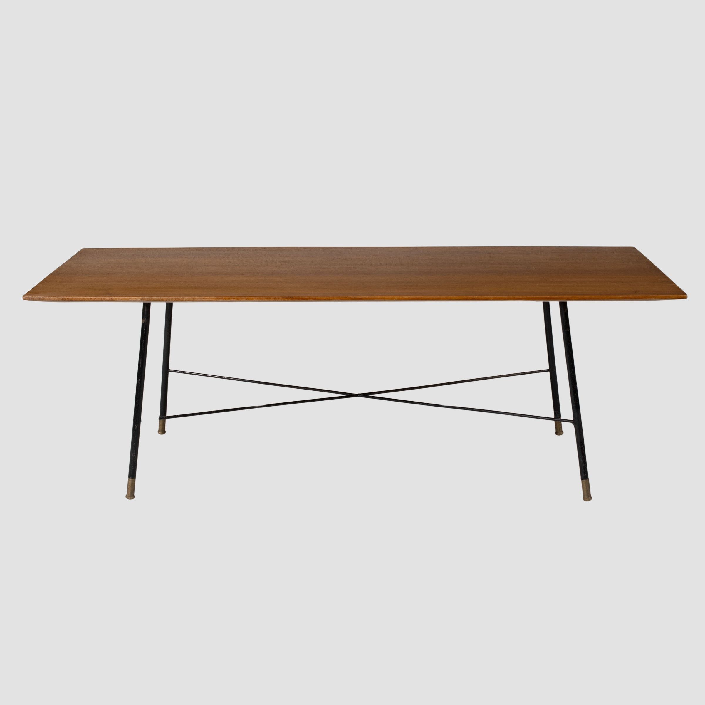 Italia, 1956 tavolino basso mod. 735 in legno, ottone ed acciaio verniciato, etichetta della produzione, lievi usure.
