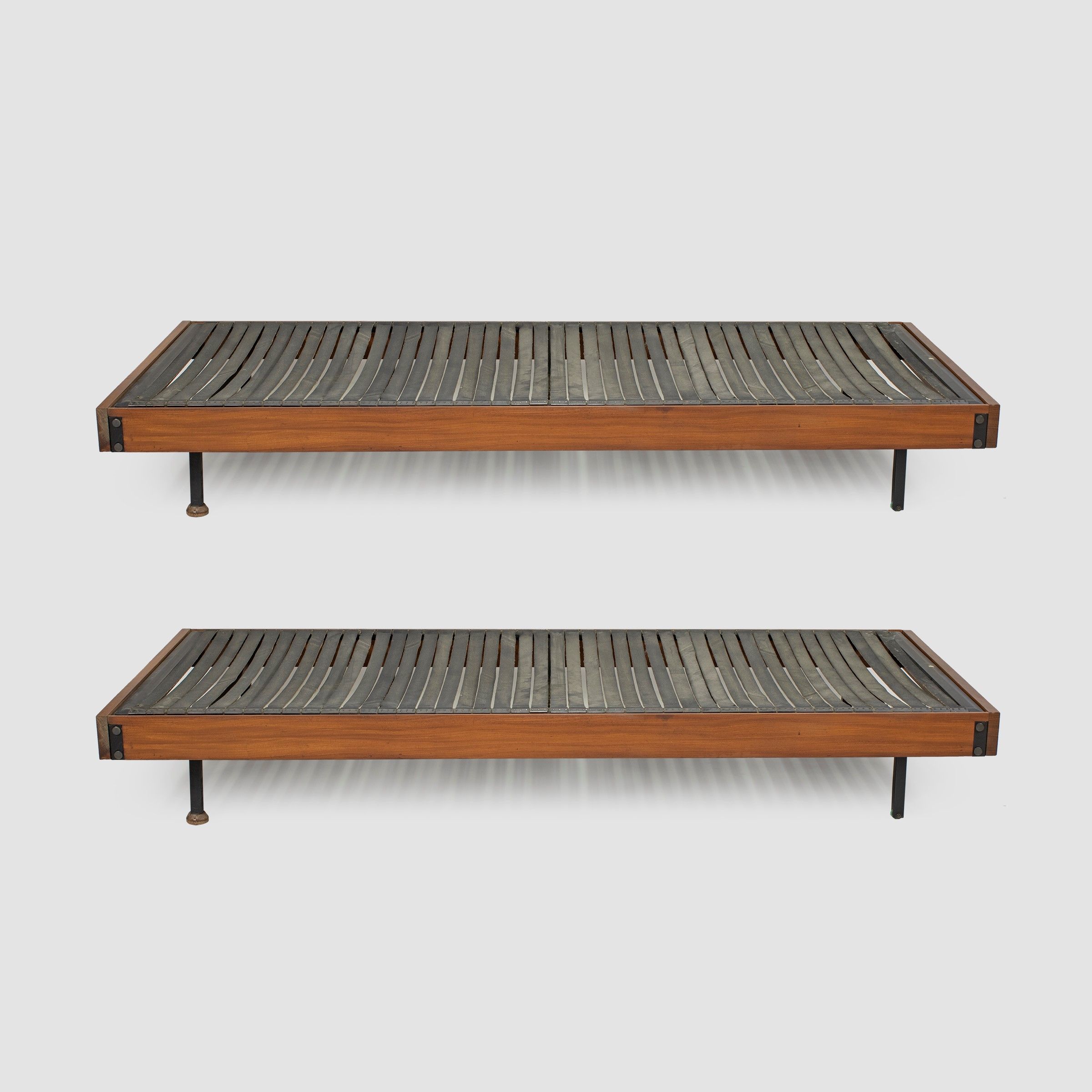 Italia, 1959 due letti singoli serie Positano in legno e metallo verniciato, etichetta della produzione.