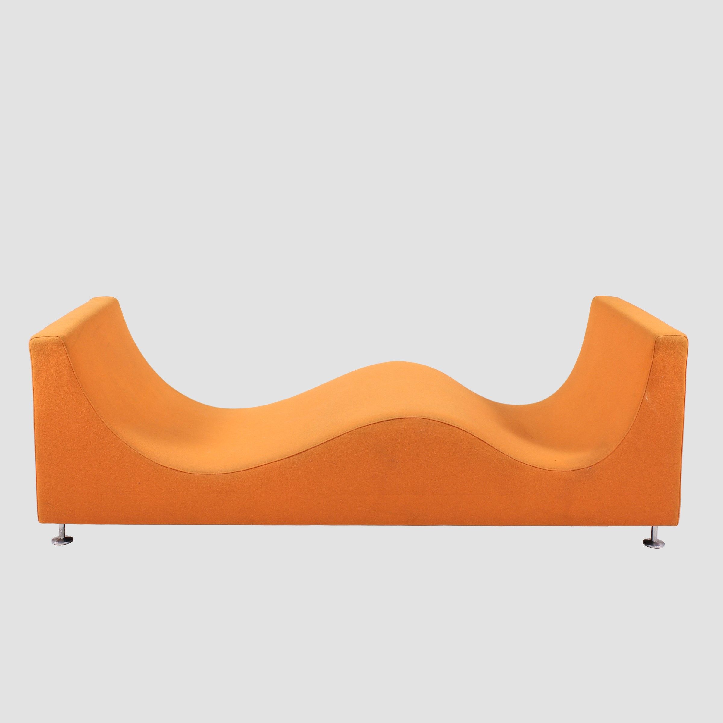 Italia, 1992 chaise longue serie Three sofa de luxe in metallo cromato e tessuto imbottito, lievi usure.