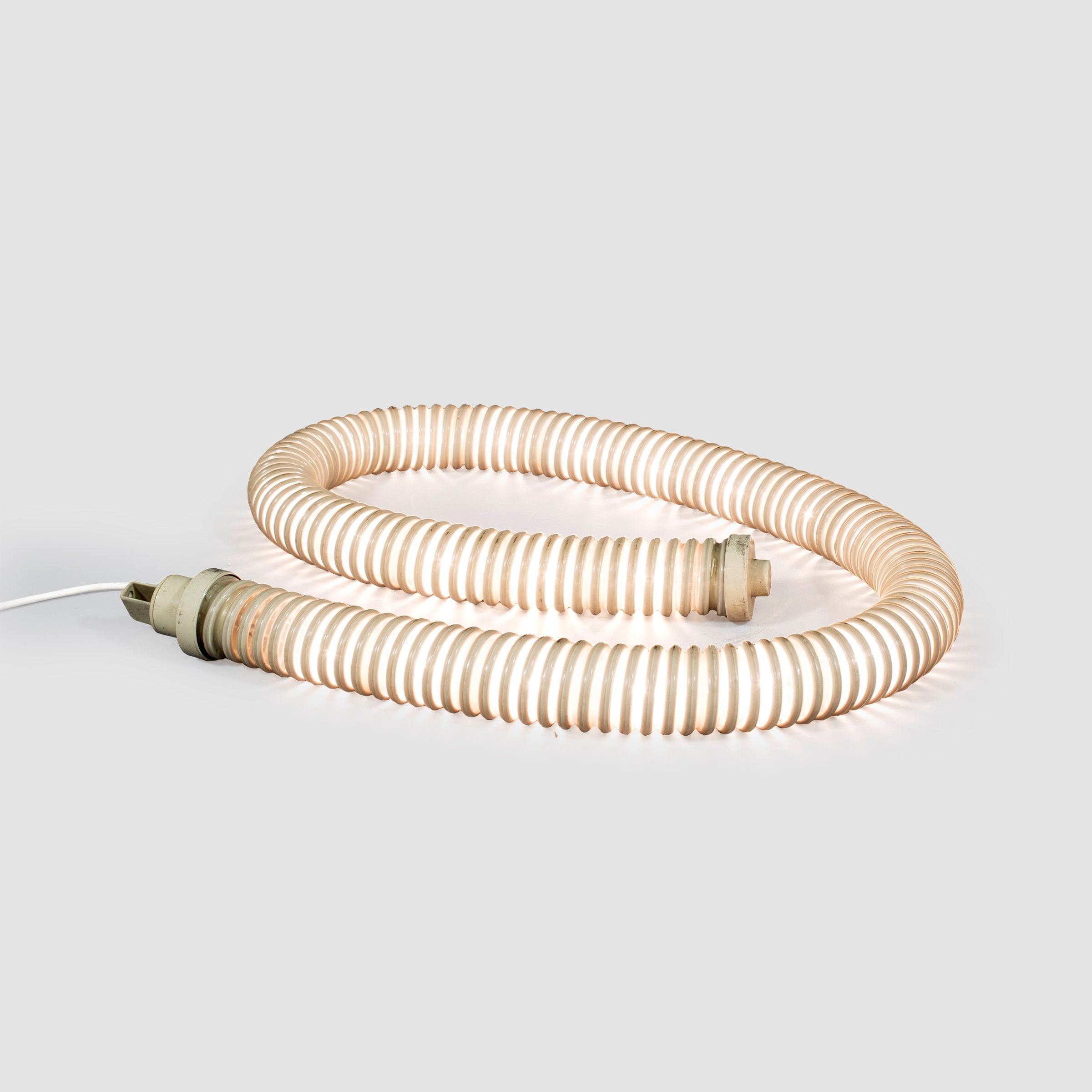 Italia, anni 70 lampada mod. Boalum in resina termoplastica rinforzata ed anelli di metallo, marchio della produzione.