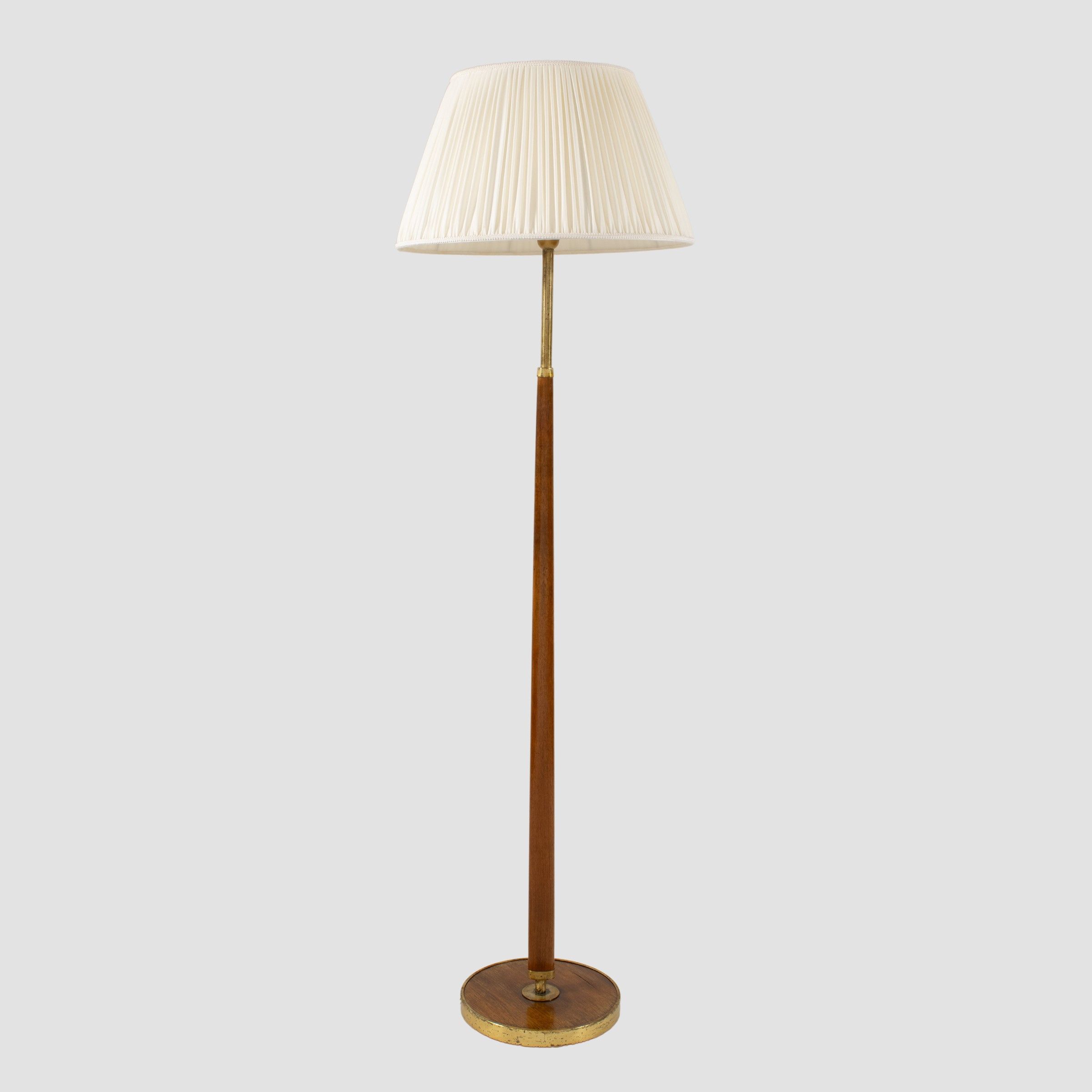 anni 60 lampada da terra in legno ed ottone, completa di paralume, usure