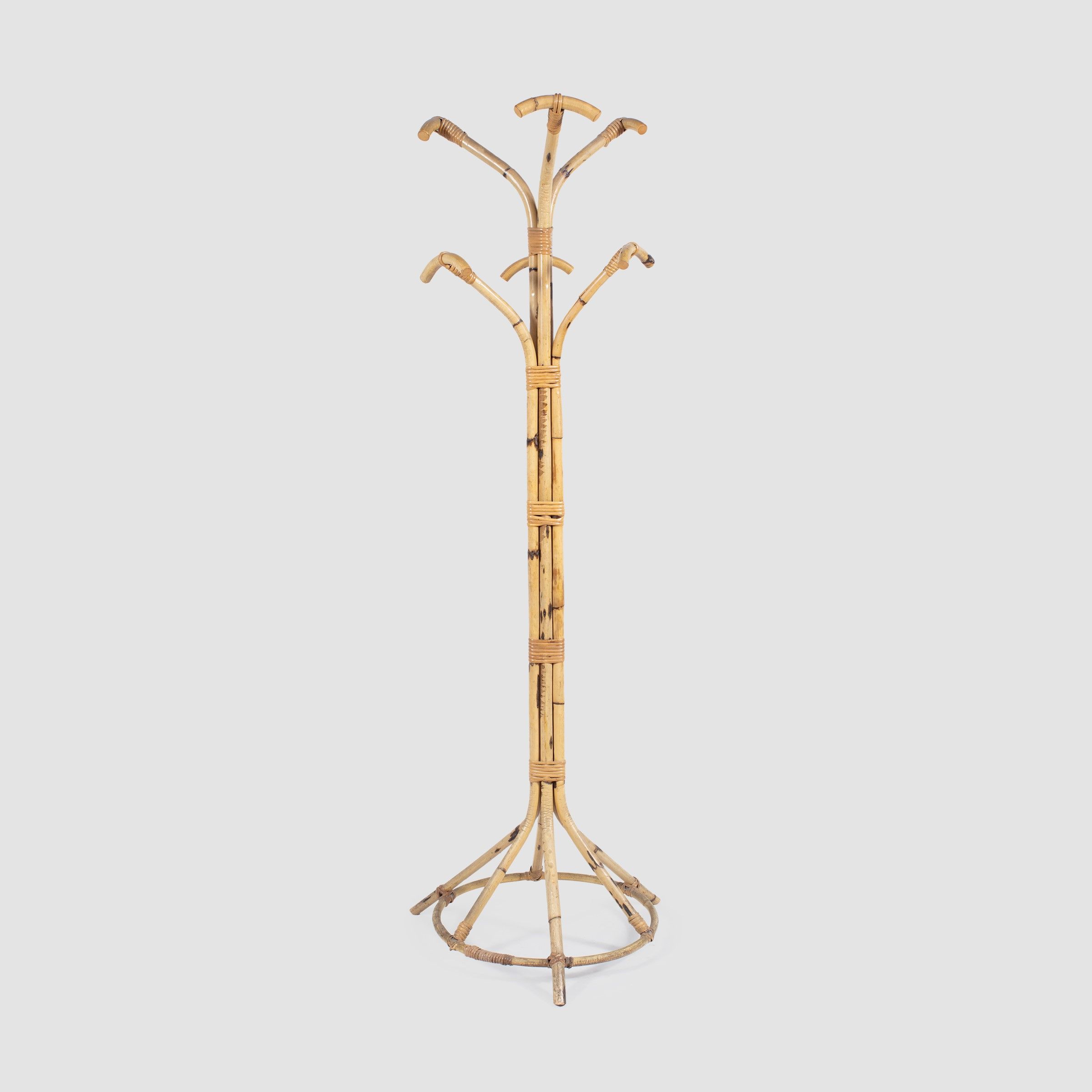 anni 50-60 appendiabiti in rattan, midollino e bambù