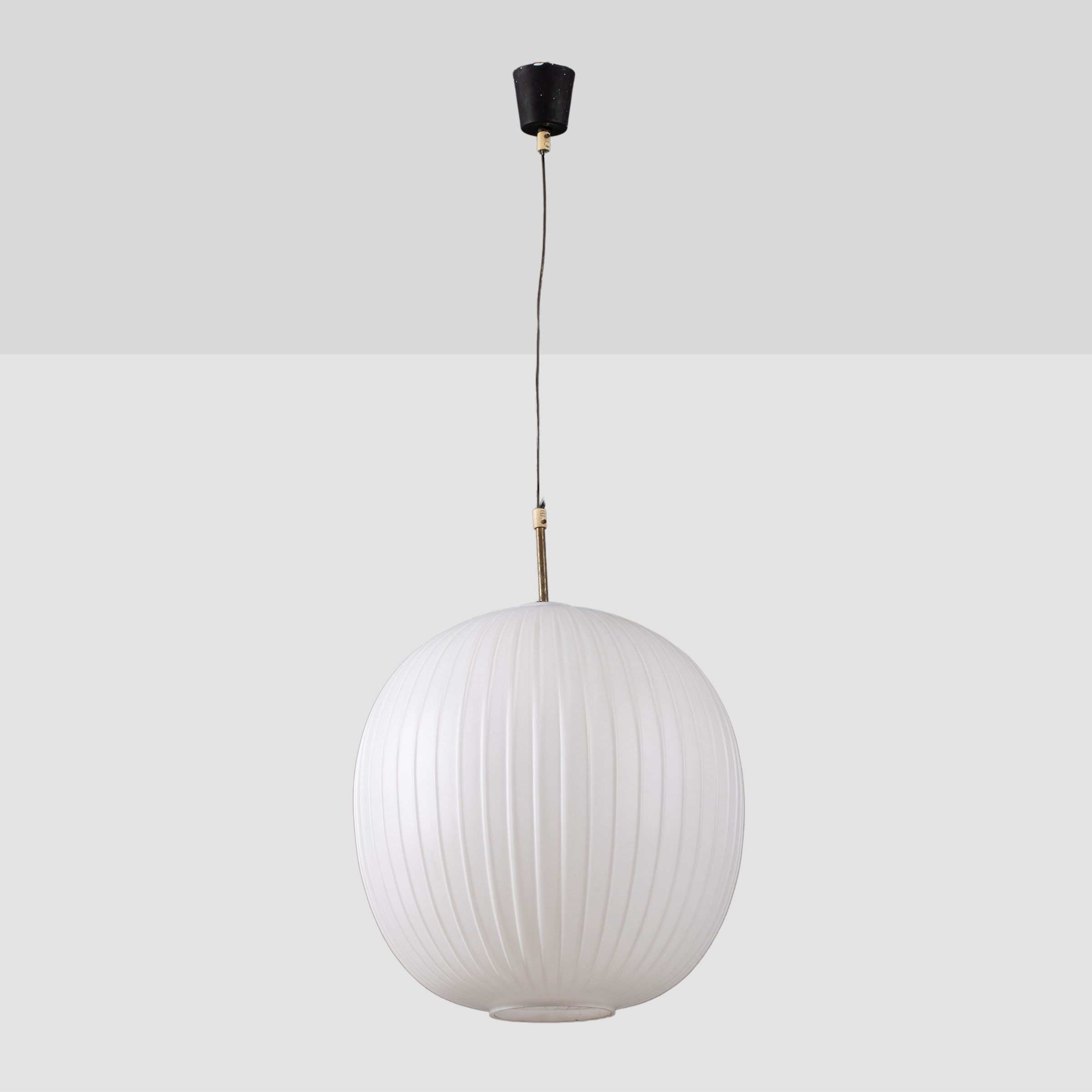 anni 60 lampada a sospensione in vetro satinato costolato, lievi difetti