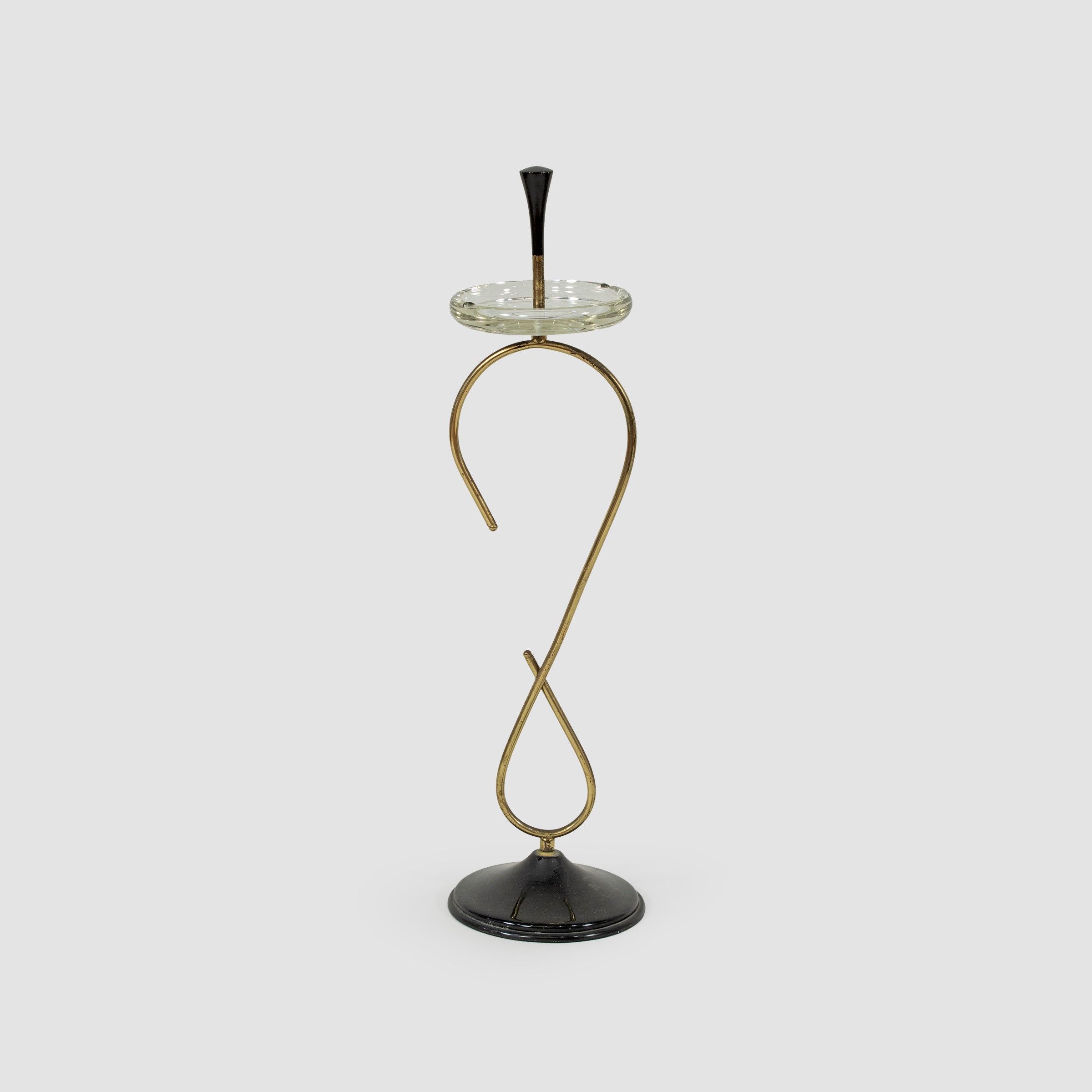 anni 60 posacenere in metallo verniciato, ottone e vetro trasparente