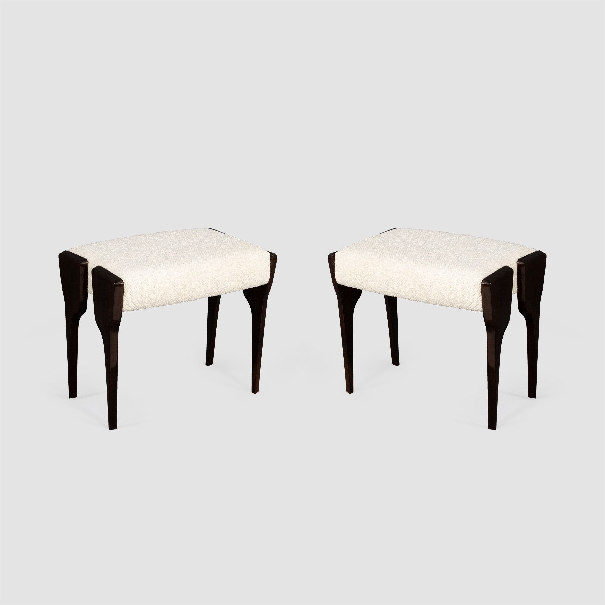 anni 40 coppia di sgabelli in legno e tessuto imbottito