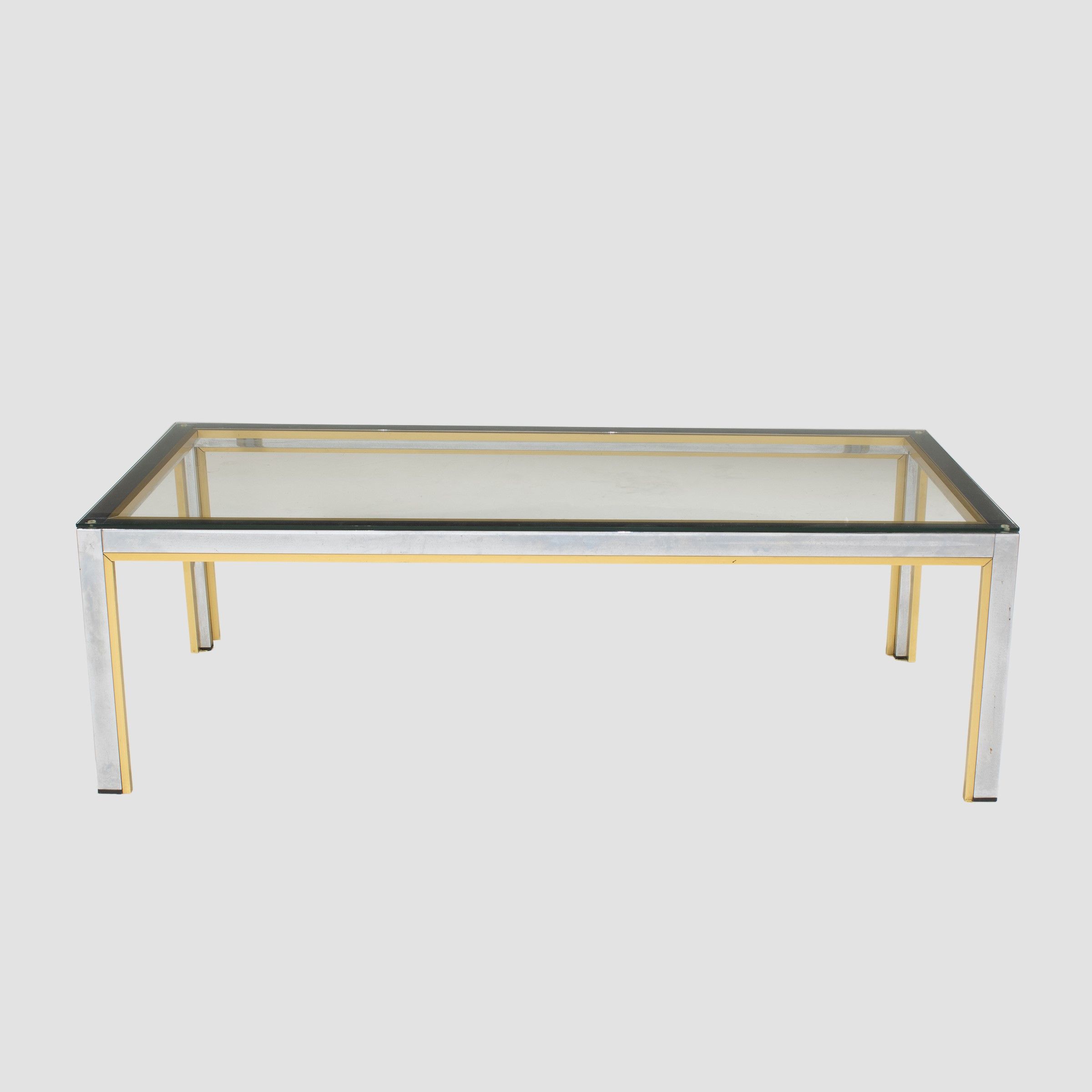 anni 70 tavolino basso in acciaio, ottone e vetro fumè
