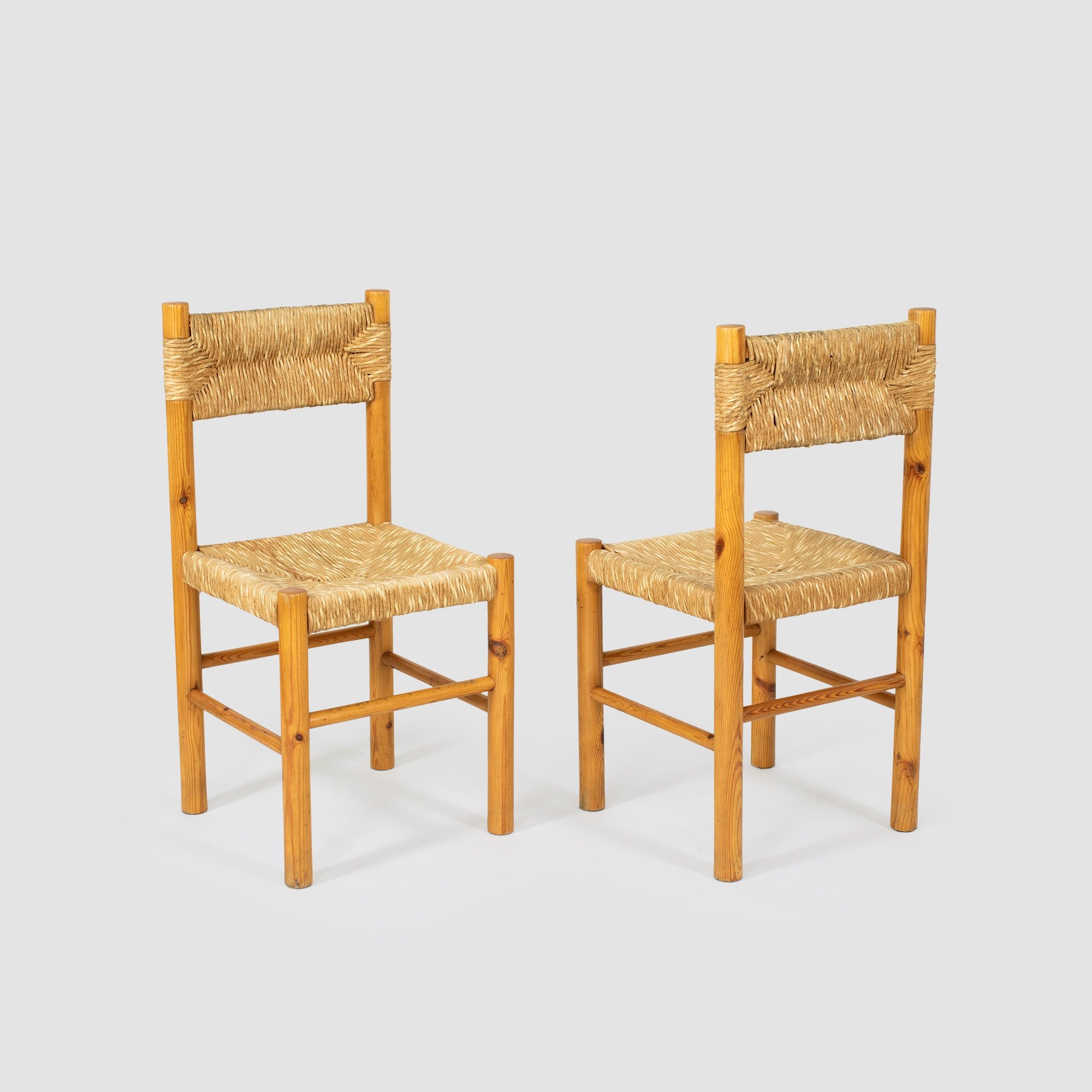 anni 70 quattro sedie in legno e paglia, lievi usure