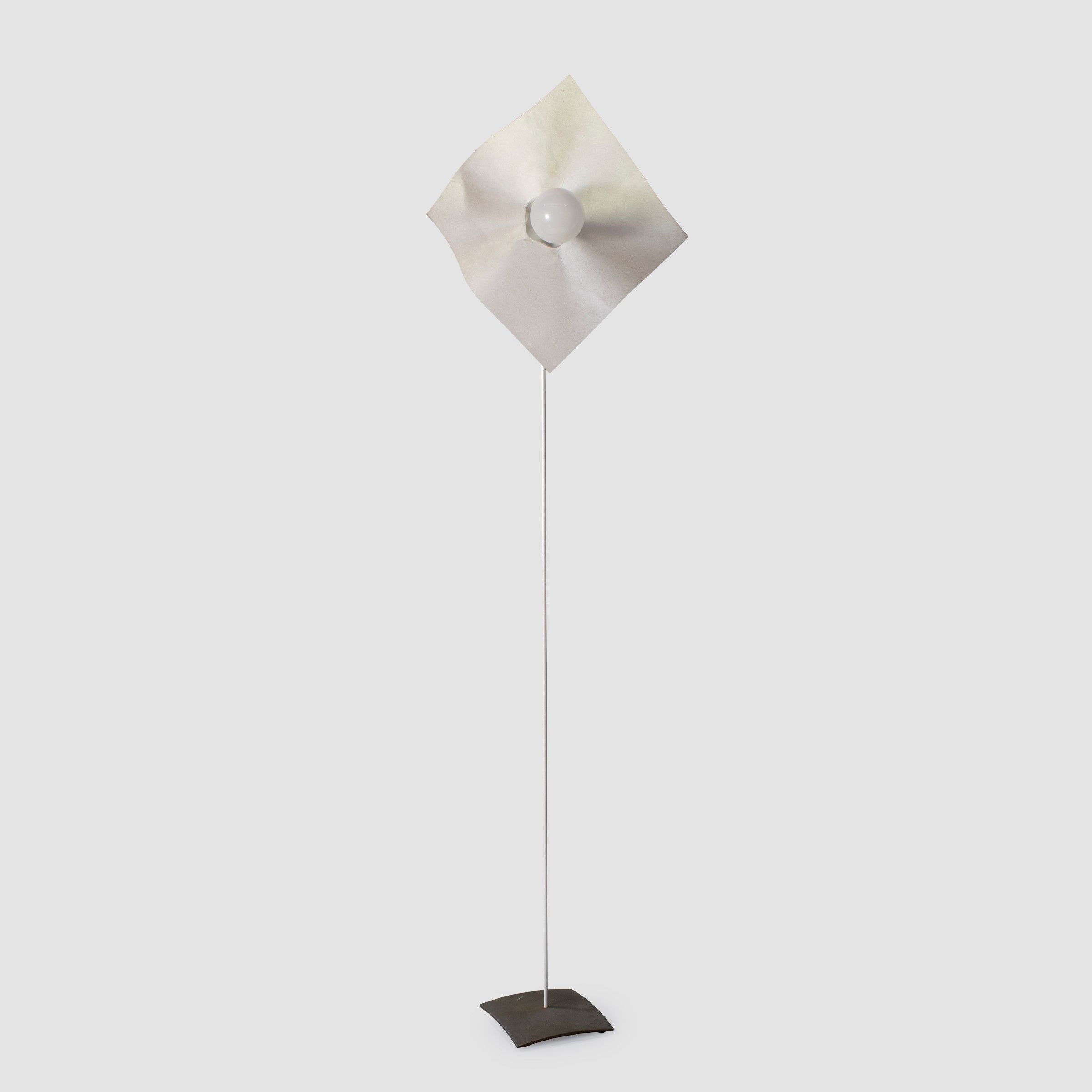h. 220 cm. Italia, anni 70 lampada da terra mod. Area in metallo verniciato e carta rinforzata con fibre di vetro ed elementi plastici, etichetta della produzione. Bibliografia: G. Gramigna, Repertorio del design italiano 1950-2000, Torino 2003, pag. 229