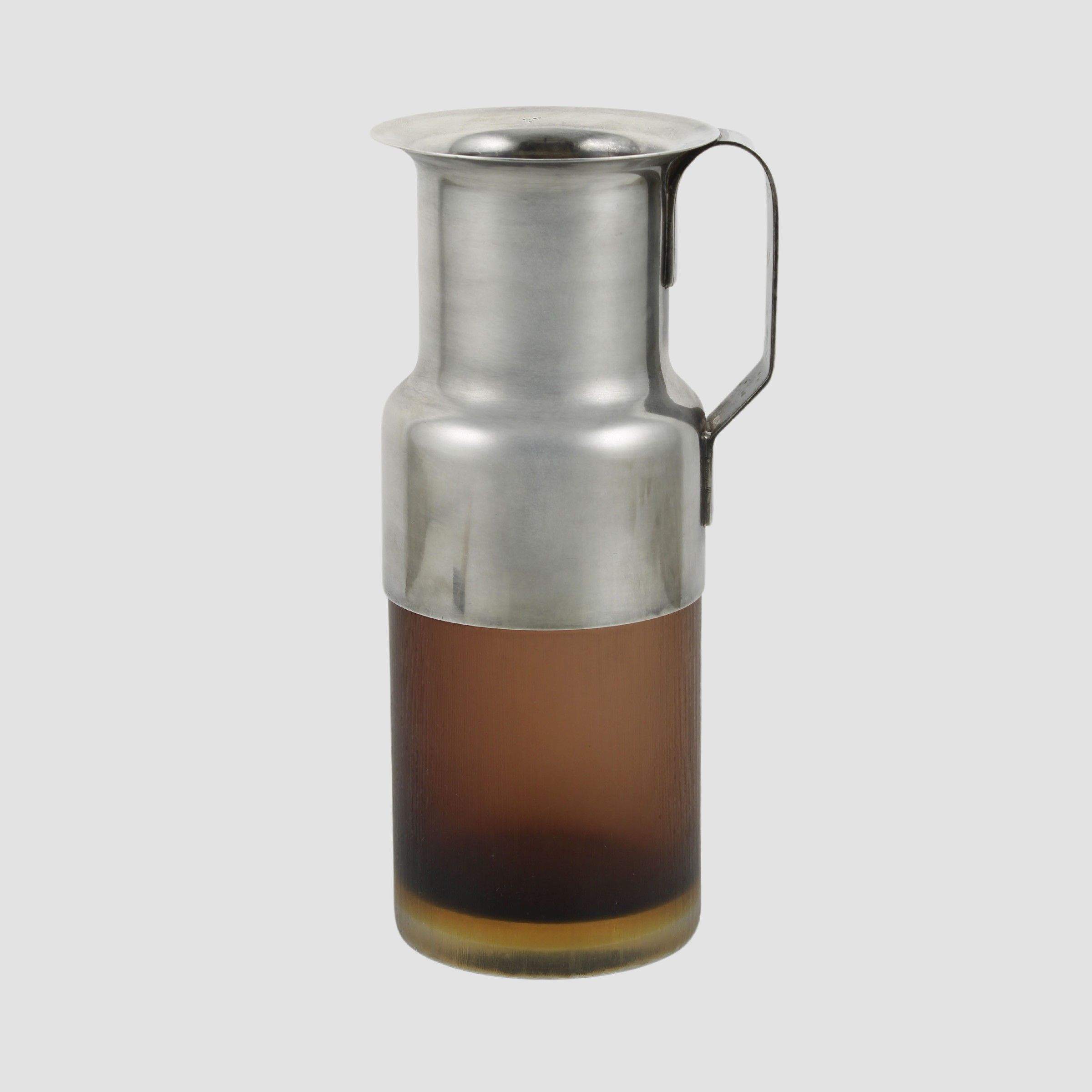 h. 25,5 cm. Murano, 1963 caraffa in vetro colorato con montatura in metallo Christofle, marchio della produzione Disegnata nel 1957 per la ditta americana Towle Silversmiths, Usa e poi realizzata solo negli anni 60 Bibliografia: Paolo Venini e la sua Fornace, Marino Barovier, Skira, pag. 470