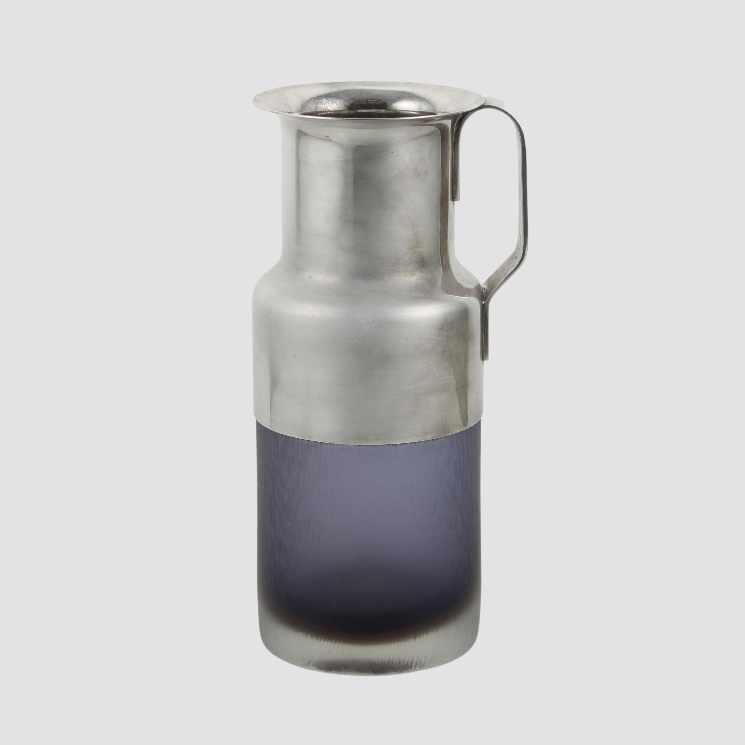 h. 25,5 cm. Murano, 1963 caraffa in vetro colorato con montatura in metallo Christofle, firma all'acido e marchio della produzione, lievi difetti. Disegnata nel 1957 per la ditta americana Towle Silversmiths, Usa e poi realizzata solo negli anni 60 Bibliografia: Paolo Venini e la sua Fornace, Marino Barovier, Skira, pag. 470