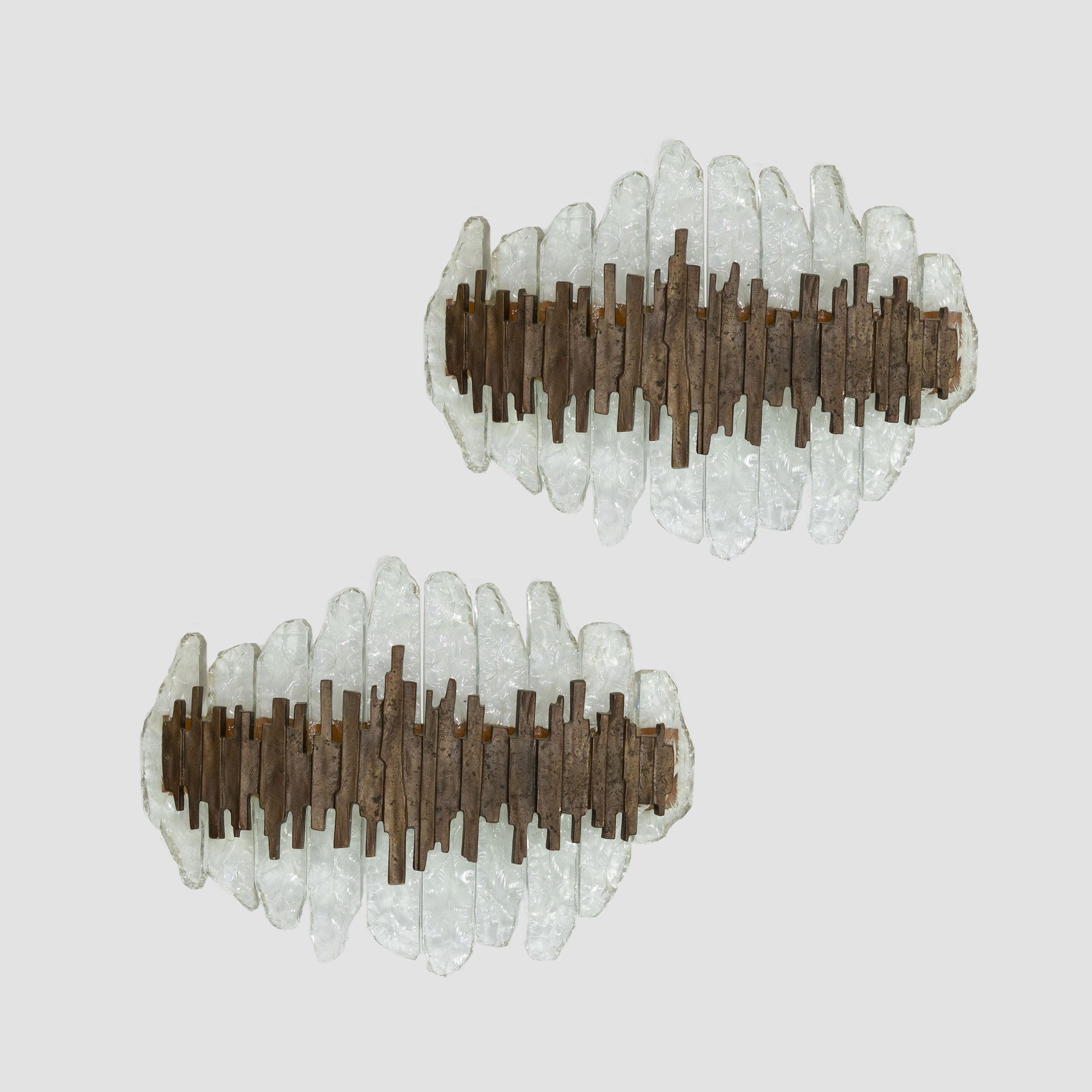 Italia, 1968 coppia di lampade da parete mod. 2496 in metallo laccato, bronzo e vetro scalpellato