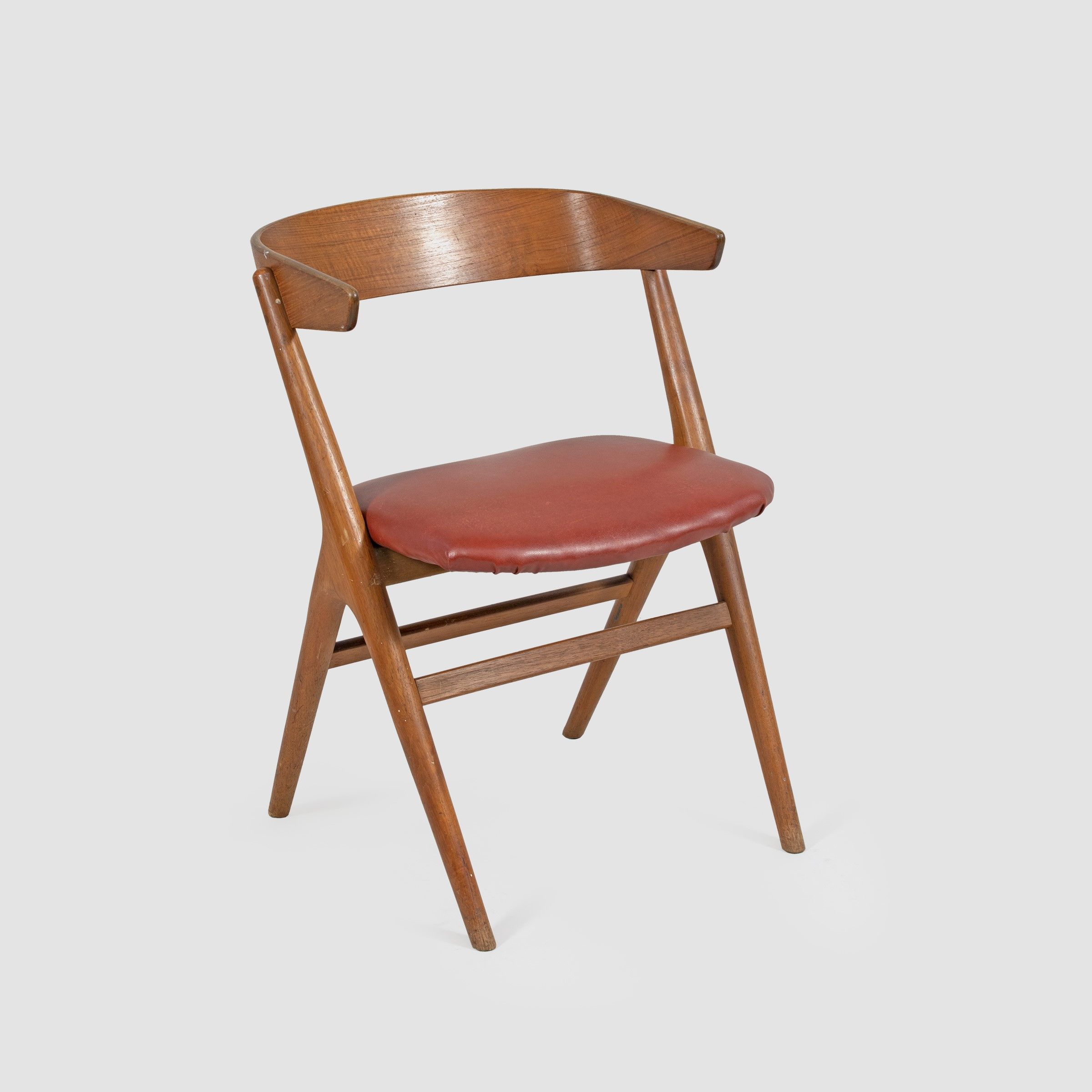 Danimarca, anni 60 sedia in legno e similpelle imbottita, etichetta della produzione, lievi usure