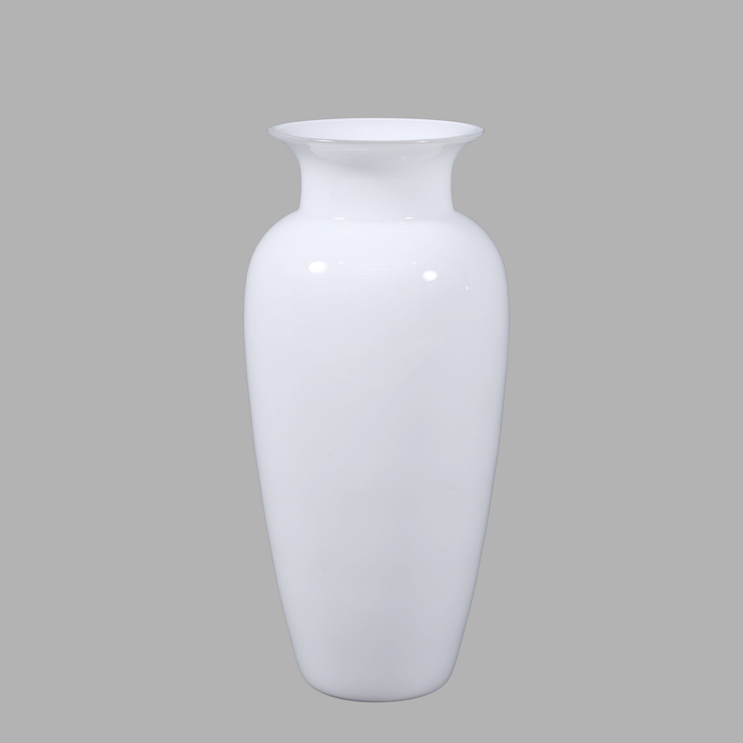 Murano, anni 70 vaso in vetro soffiato opalino bianco, firma a punta