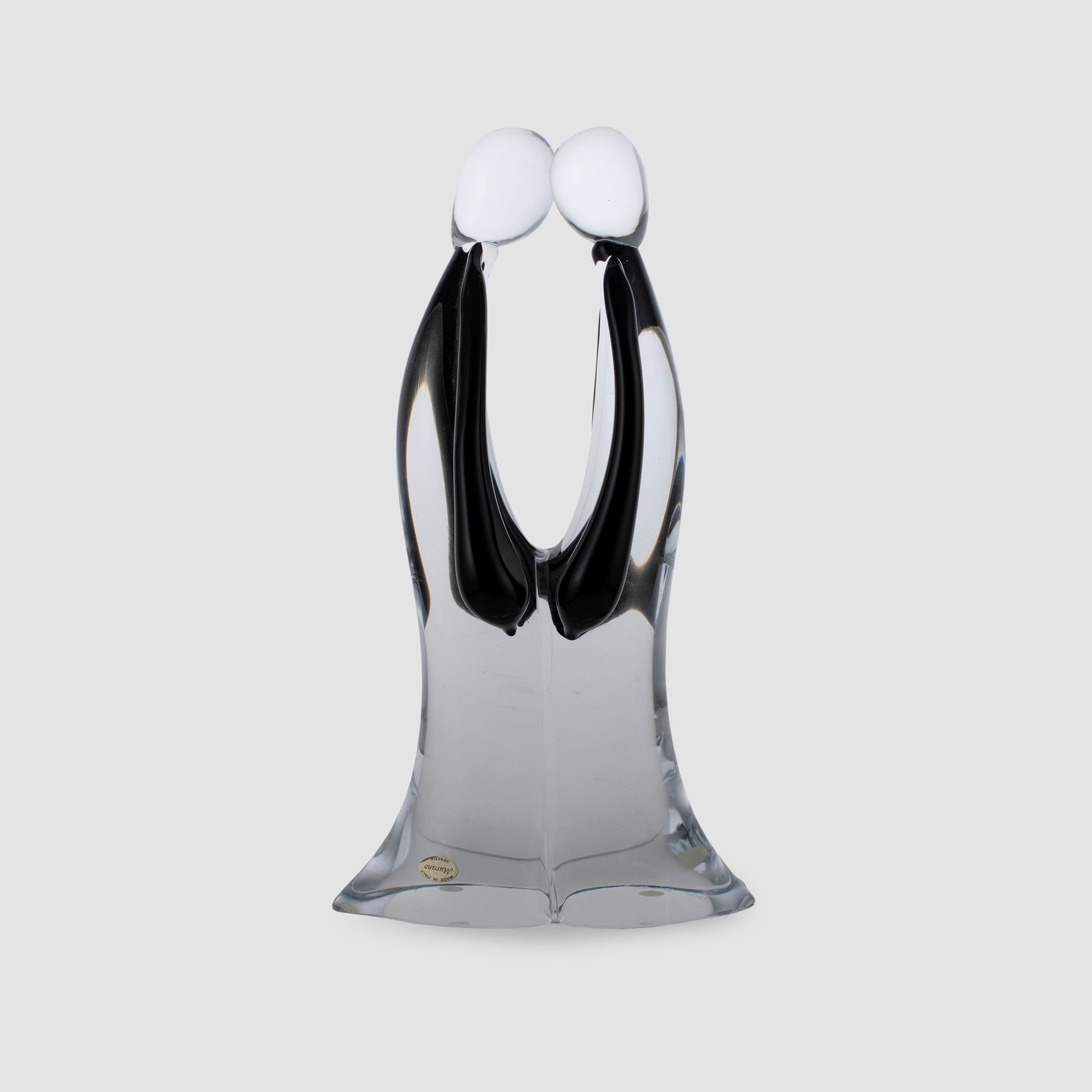 Murano, anni 90 scultura in vetro trasparente e nero, firma a punta