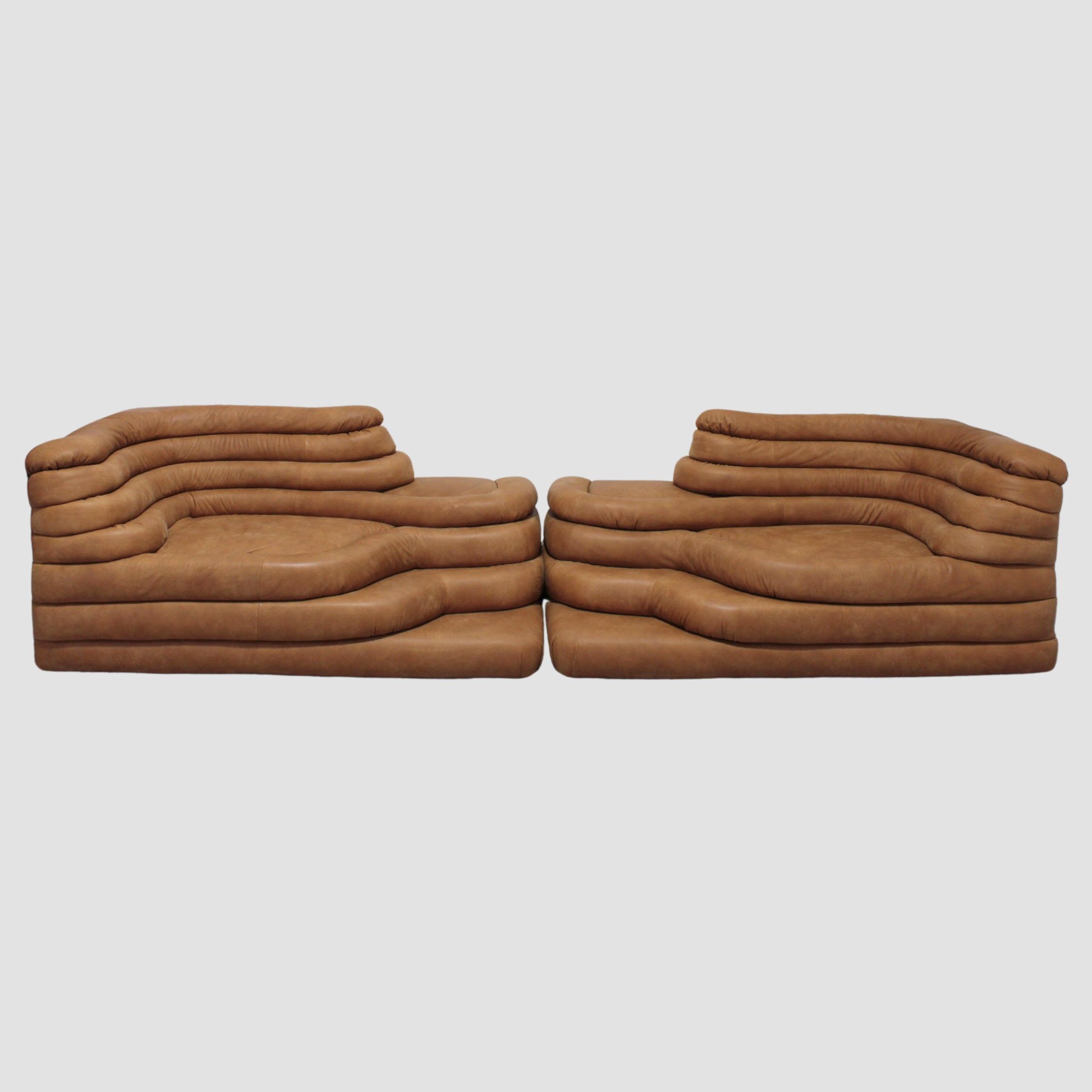Svizzera, anni 70 divano componibile mod. Terrazza DS-1025 composto da due moduli in legno e pelle