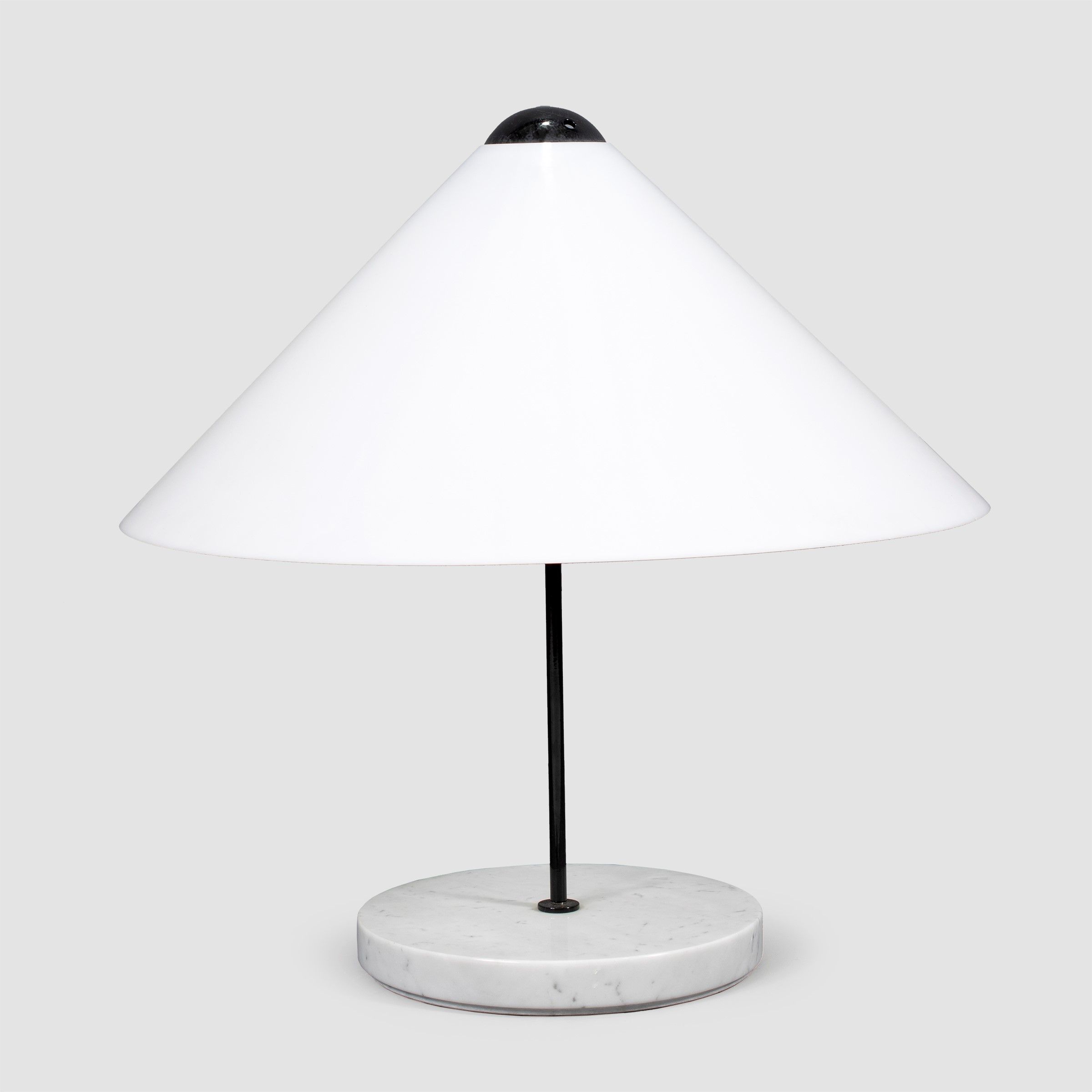 Italia, 1973 lampada da tavolo mod. Snow in metallo verniciato, perspex e base in marmo, etichetta della produzione