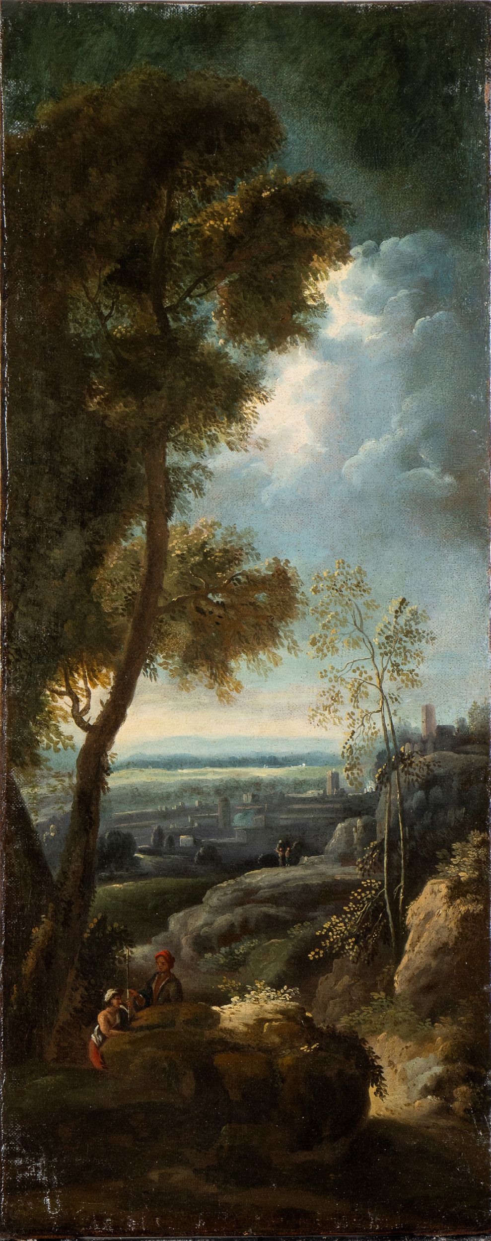 a) Paesaggio con corso d'acqua e lavandaie al fontanile; b) Paesaggio con figure [..]